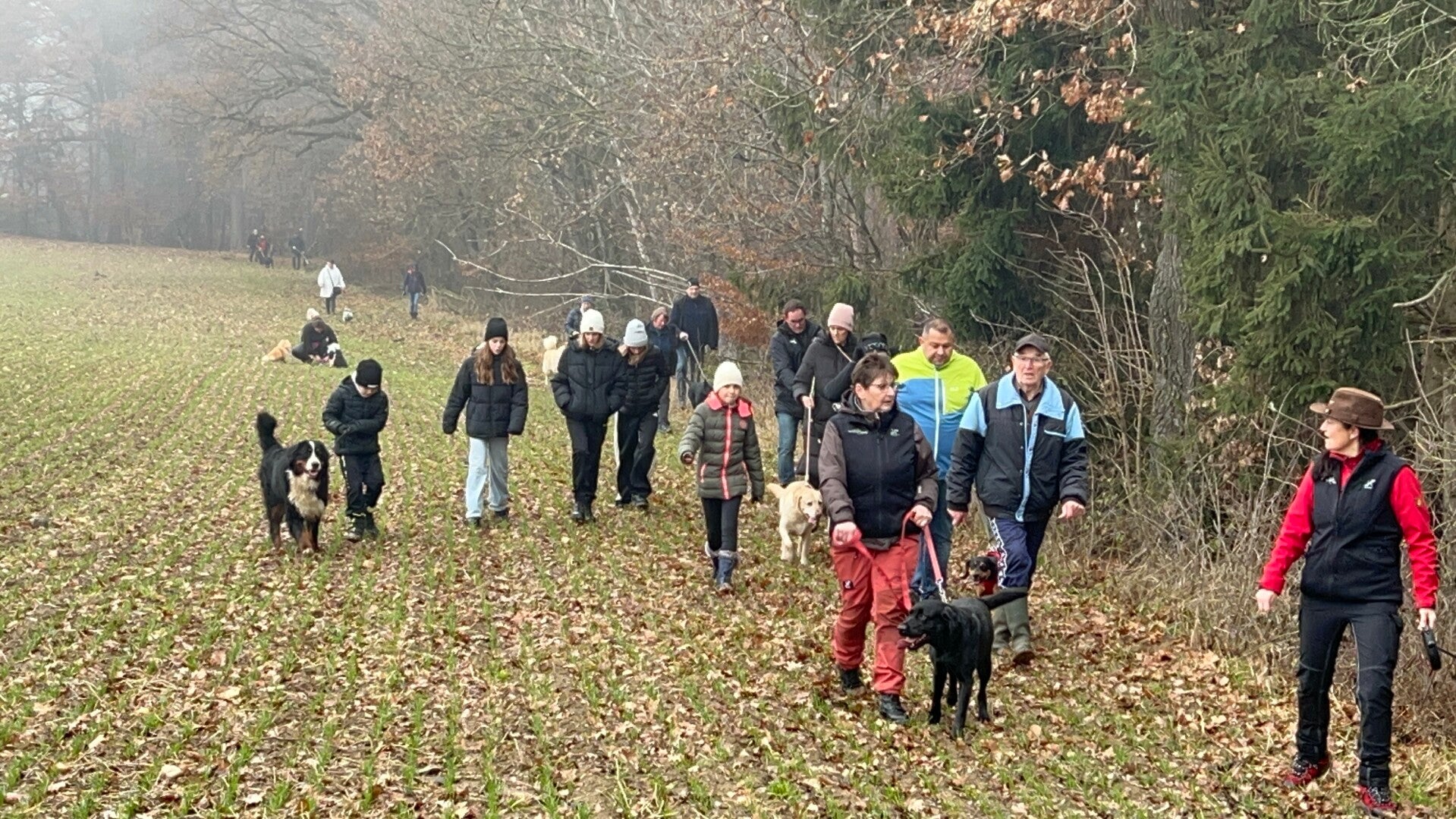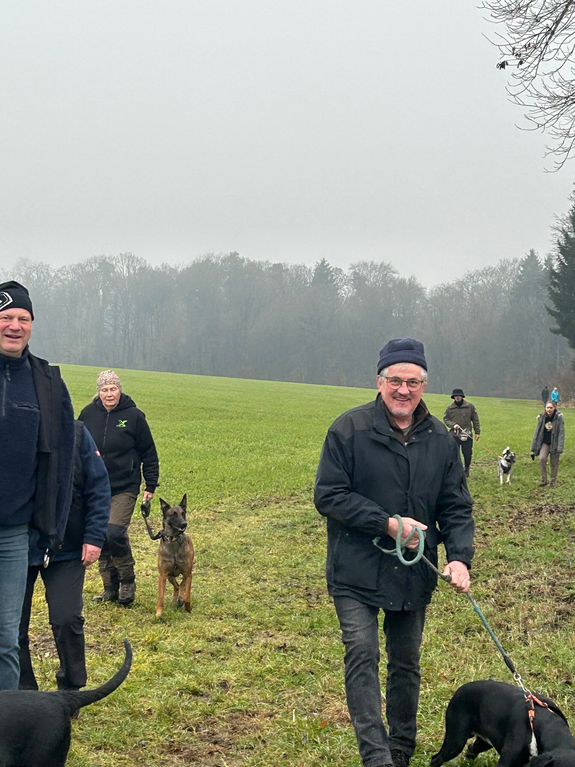 Unsere Wanderung führte uns durch Wälder und Wege, die im sanften Winterlicht fast ein wenig verzaubert wirkten. Schritt für Schritt entstand eine stille Harmonie zwischen Hundeführern und ihren treuen Gefährten – ein Miteinander, das Herz und Seele gleichermaßen erfüllte.
